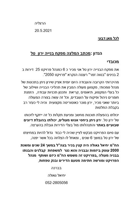 ליווי מקצועי צמוד לאורך כל תהליך התמ"א, החל משלב התכנון, הביצוע, ועד לשלב הבדק, תוך שמירה על אינטרס הדיירים למול היזם, בשקיפות מלאה ונאמנה עבור הדיירים